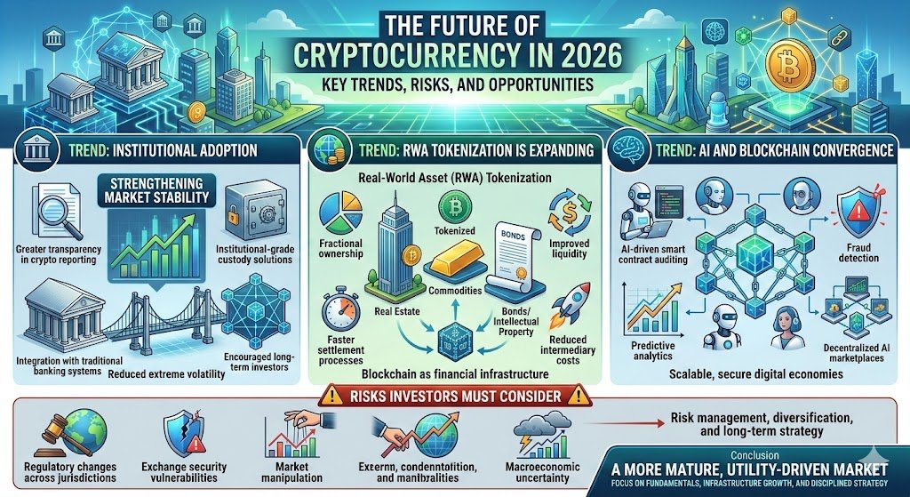 Cryptocurrency in 2026 represents a more mature, utility-driven market. Investors who focus on fundamentals, infrastructure growth, and disciplined strategy are better positioned for sustainable gains.